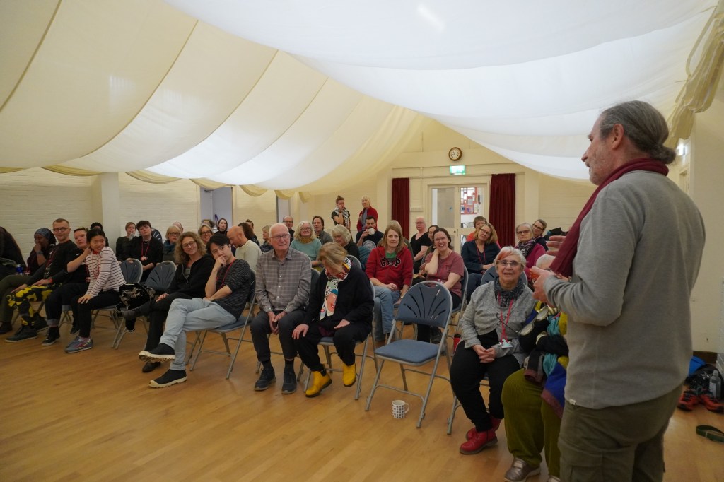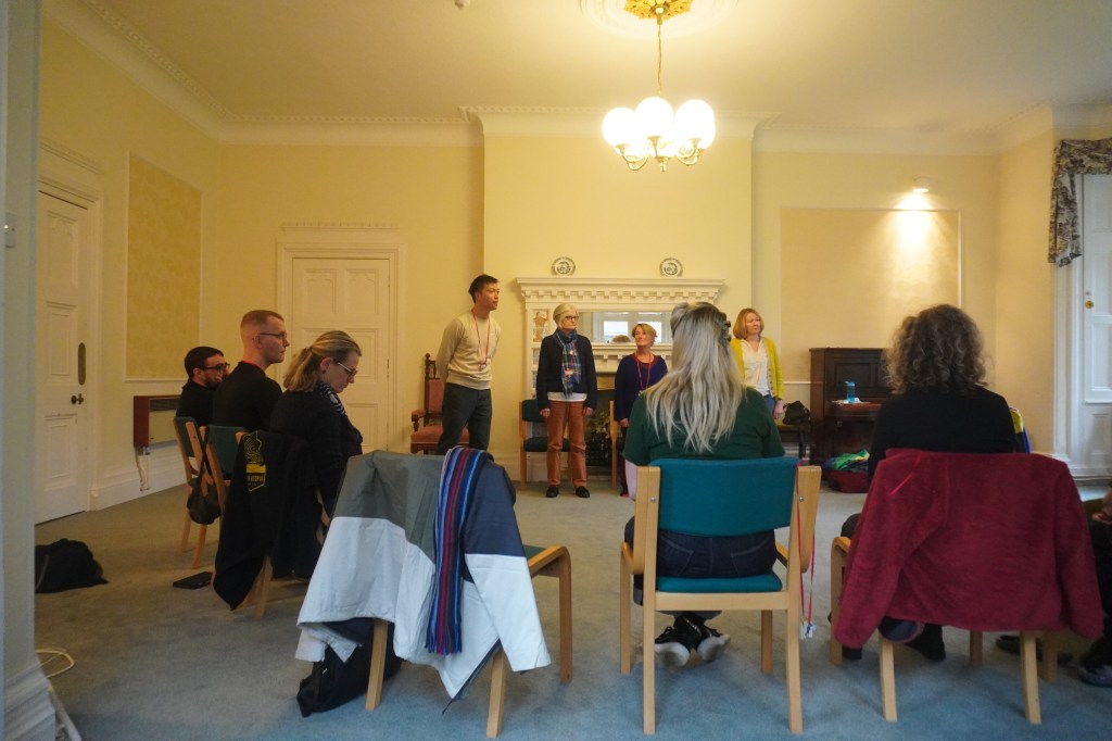 In November 2024 we held the first UK & Ireland Playback Gathering in 8 years, at Buckden Towers in Cambridgeshire. Organised by 7 playbackers from across the Two Islands, the gathering welcomed 70 attendees for a weekend of playback workshops, wellbeing sessions, performances and time dedicated to exploring what the new Two Islands Playback Network might look like.